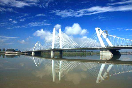 漢中龍崗大橋總長713米,橋面寬40米,橋長加引道有1000多米,主橋結(jié)構(gòu)為三塔...